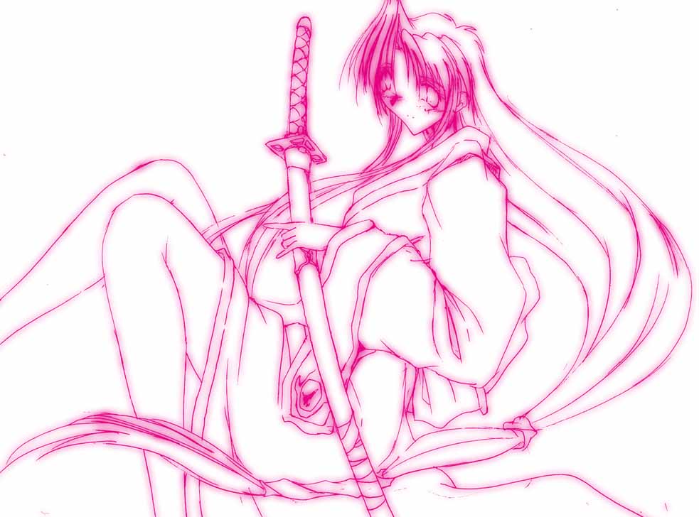 刀を抱いた美女ですね。